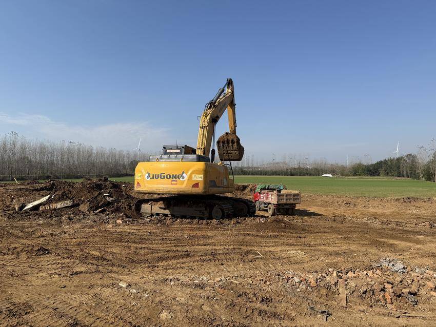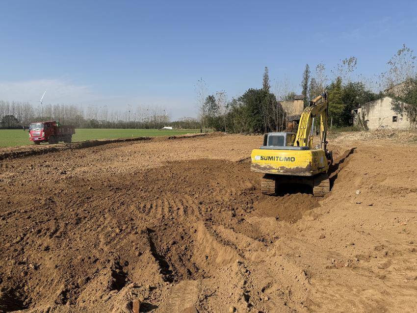 连日来,在清明河乡官渡村的土地复垦现场,一派如火如荼的繁忙现象——推土机与挖掘机轰鸣不断,正在进行土地平整后的精细化作业。这片长时间搁置的土地,现在正勃发重生,成为官渡村推进团体增收、助力乡民致富的“期望田”。